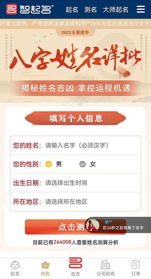 一取名信息科技有限公司、专注于取名测算类网站平台的开发,我们只做这一件事。