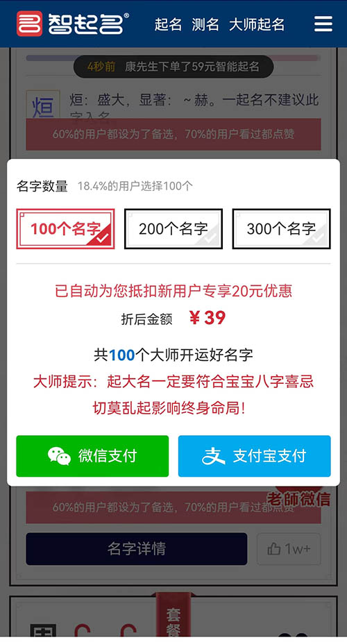 目前市面上类似系统众多,多数为随机或固定生成名字,非严格意义上专业取名系统。一取名系统集成宝宝取名测名、公司取名测名、店铺取名测名、大师在线接单、CMS文章系统于一体,多种应用场景集成微信、支付宝官方/个人支付接口,并以18种独家算法、百万级数据、超强的管理后台以源代码的形式交付,所有数据本地化非API,更加符合您的发展规划!专业商用取名源码,全网独此一家